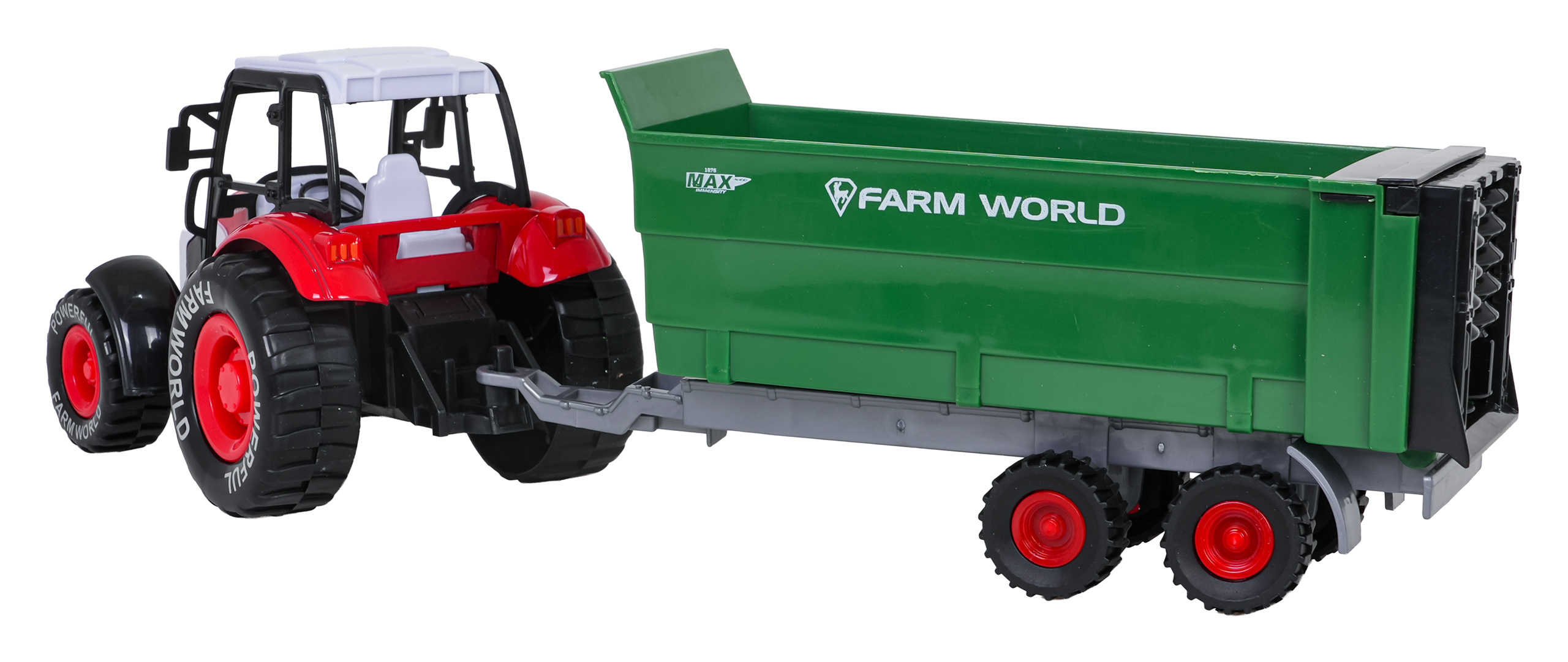Kovová sada traktoru s přívěsem pro děti starší tří let. Sada byla vyrobena z nejkvalitnějších materiálů s důrazem na detaily. Traktorek má kovové prvky a pohon pull back. Přívěs můžeme odpojit od traktoru. Ideální hračka do domu i na ven.