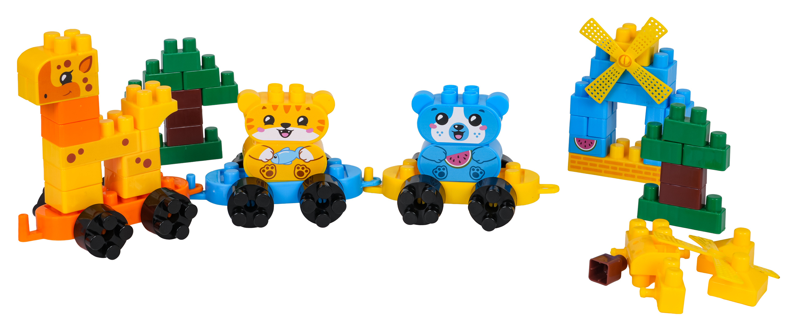 Velká sada barevných kostek pro děti od tří let. Sada je vyrobena z nejkvalitnějších materiálů v živých barvách. Prvky sady umožňují sestavení různých konstrukcí např. fronty se zvířátky. V sadě se také nacházejí dekorativní samolepky.