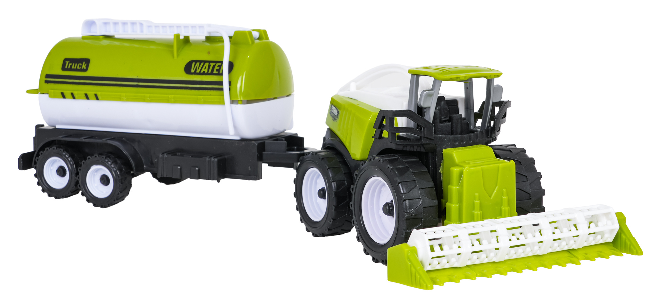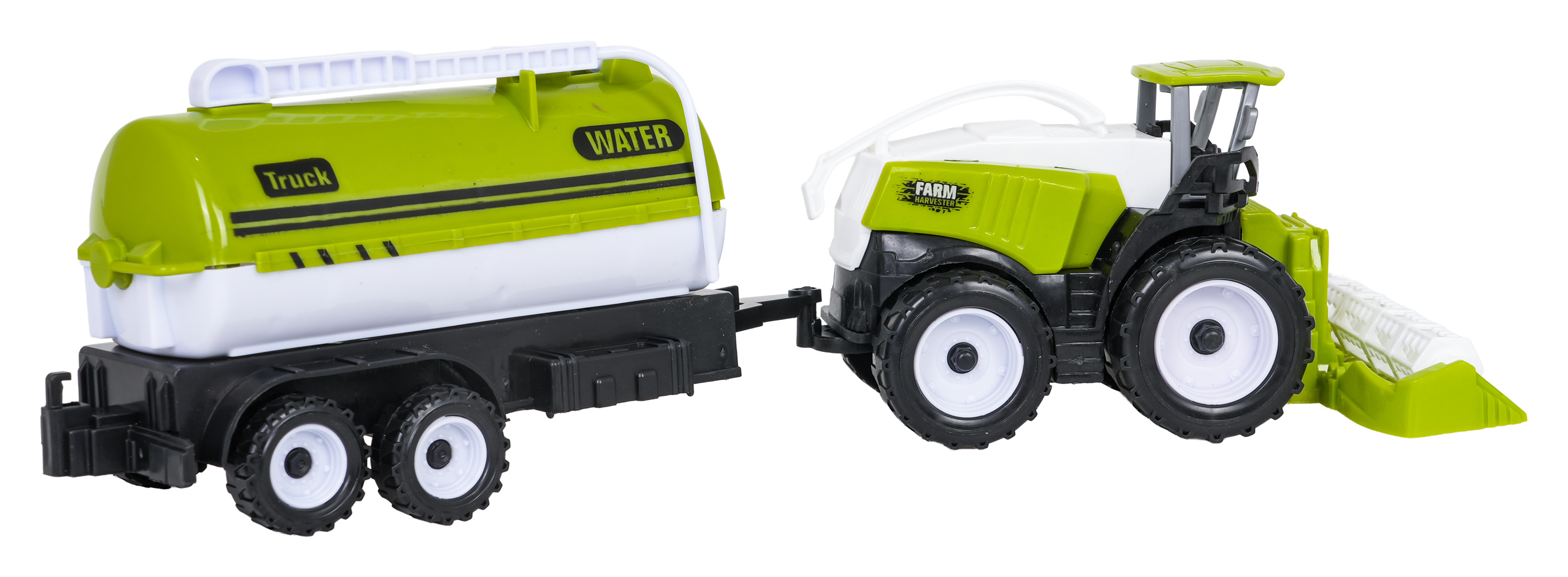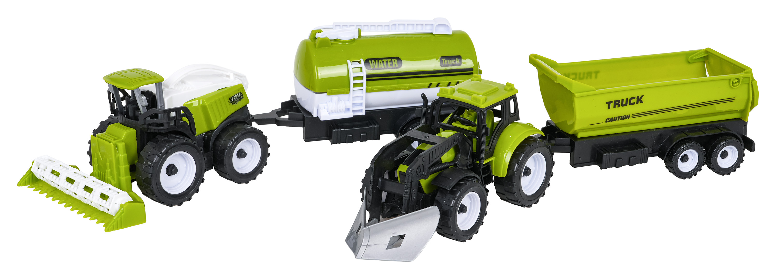 Sada zemědělských vozidel pro děti starší tří let. Sada je vyrobena z nejkvalitnějšího plastu. V sadě můžeme najít kombajn, traktor s pluhem, cisternu a přívěs. Vozidla byla zpracována velmi realisticky s důrazem na detaily a mají mnoho pohyblivých prvků. Přívěs a cisternu můžeme připojit jak k traktoru, tak ke kombajnu.
