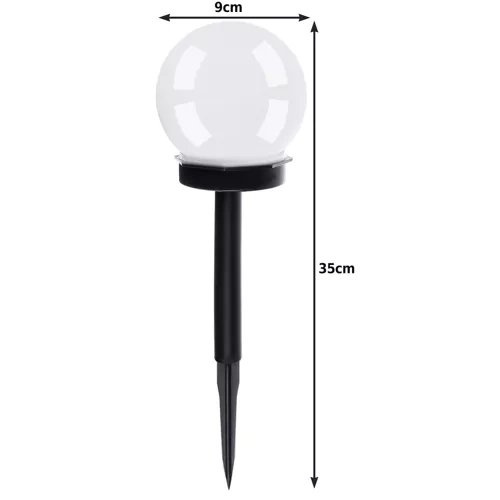 - SPECIFIKACE – materiál: plast + kov; barva světla: studená bílá; vodotěsné: IP 44; světelný zdroj: LED; pracovní doba: cca 6 h; tlačítko: On/Off; délka špejle: 12 cm; rozměry: 35 x 9 cm; hmotnost jednoho kusu: 0,077 kg; hmotnost soupravy: 0,466 kg; hmotnost balení: 0,703 kg.