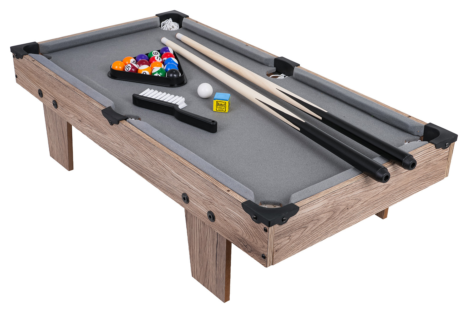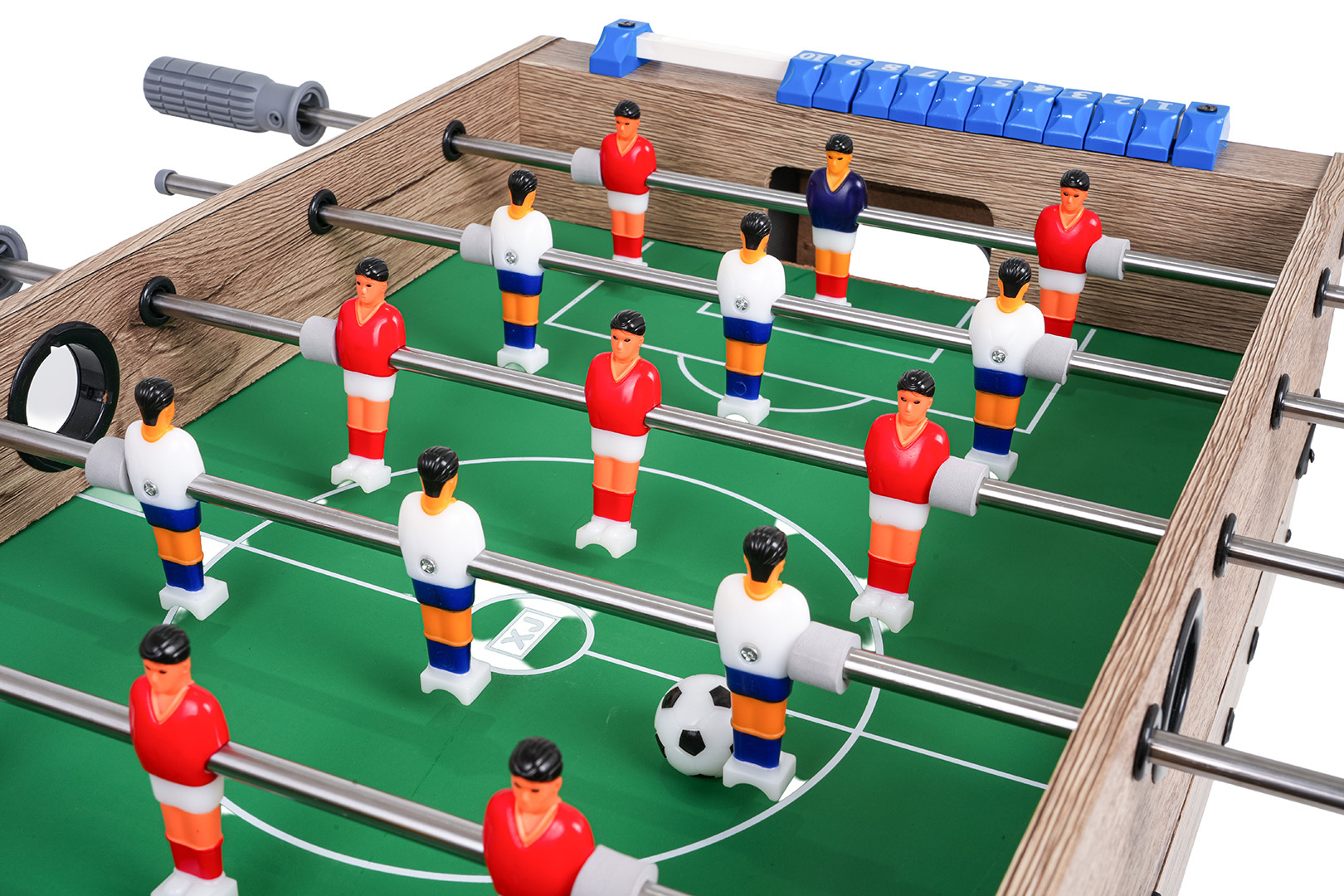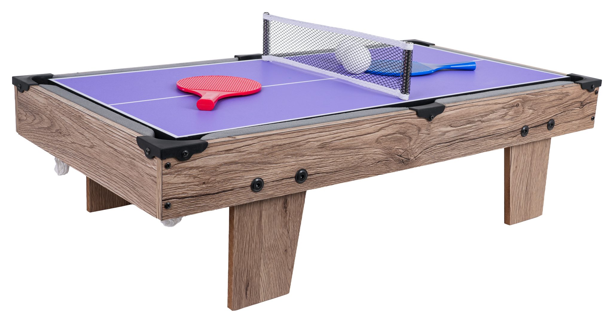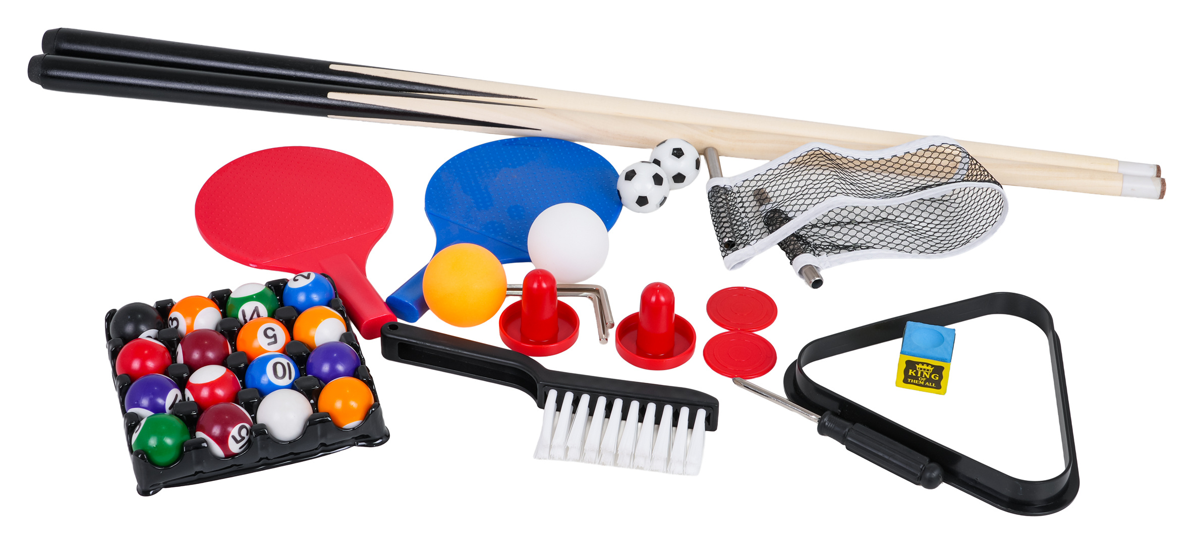Stůl s populárními hrami: kulečník, air hockey, tenis a stolní fotbal pro děti od tří let. Sestava byla vyrobena z dřevotřísky, HDF desky a kovu, což zaručuje stabilní konstrukci, odolnost a spolehlivost. Dokončen s precizností a přesností, má propracované detaily. Stolní verze a demontovatelné vyměnitelné desky šetří místo v pokoji a zpestří čas. Ideální sada bude pro aktivní trávení společného času během vzájemné soutěže a zábavy. Ideální dárková sada a ozdoba každého pokoje fanouška sportovních her.