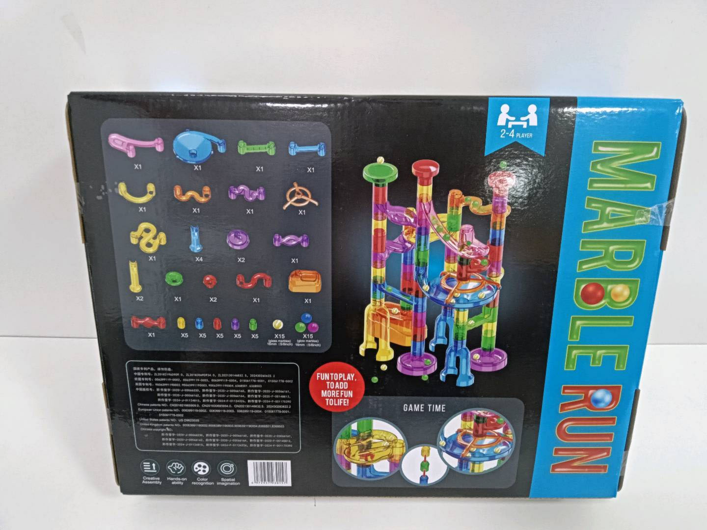 Barevná, odolná dráha k vlastní montáži se svítícími kuličkami ve tmě pro děti od tří let. Zábava spočívá ve vlastnoručním postavení konstrukce dráhy a následném pouštění míčků tunely. Pouštění kuliček do pohybu a pozorování, jak překonávají klikaté tunely, přináší spoustu radosti, uklidňuje a ztišuje. Hračka pozitivně ovlivňuje rozvoj kreativity, představivosti a manuálních dovedností.