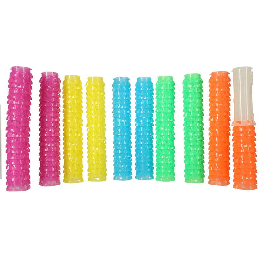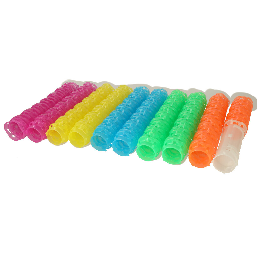 Bloky jsou v pěti barvách - žluté, růžové, zelené, modré a oranžové. Díky tomu je možné vytvořit zajímavou a mimořádně pestrou skladbu pro hraní!
