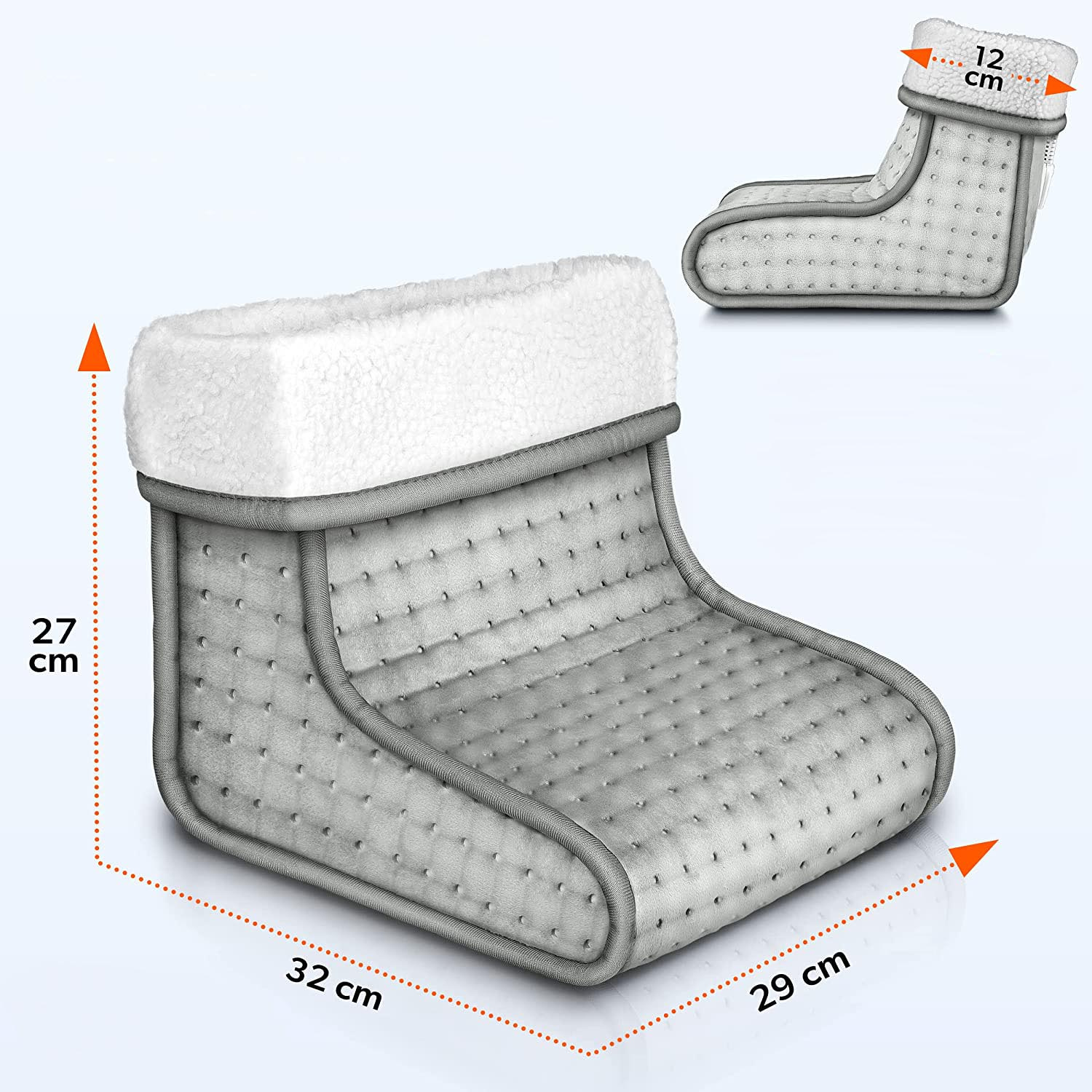 Bezpečnost provozu zajišťuje pojistka s ochranou proti přehřátí. Z boty lze vytáhnout plyšovou podšívku, kterou můžete dát prát do pračky a prát na 30°C.