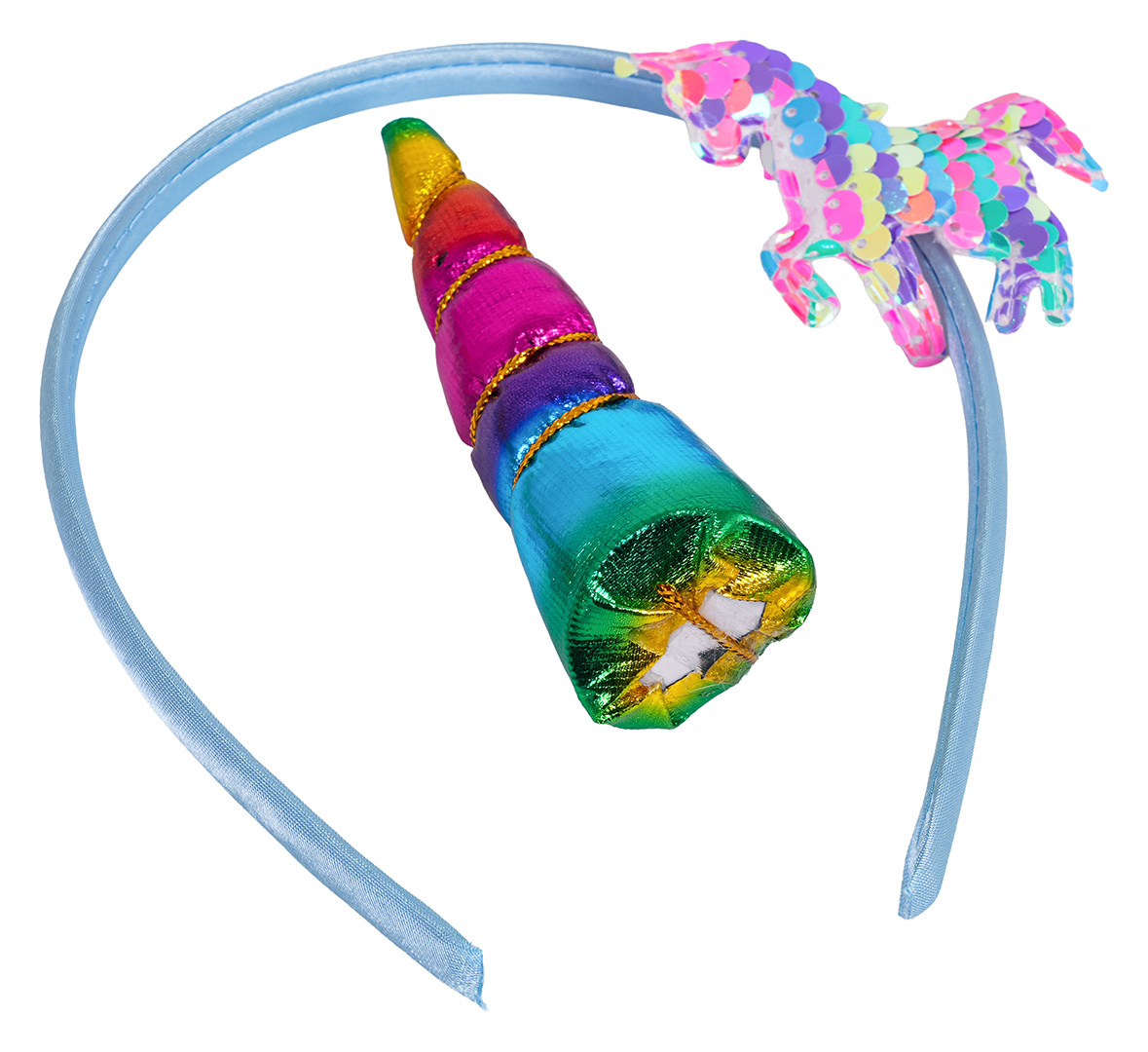 - aplikace: roh jednorožce, mašle, 3 x kytička, 2 x ouško, roh jednorožce, tři motýlci, flitrový jednorožec, 5 hvězdiček, 2 x sponka, stužka se zlatými liškami,