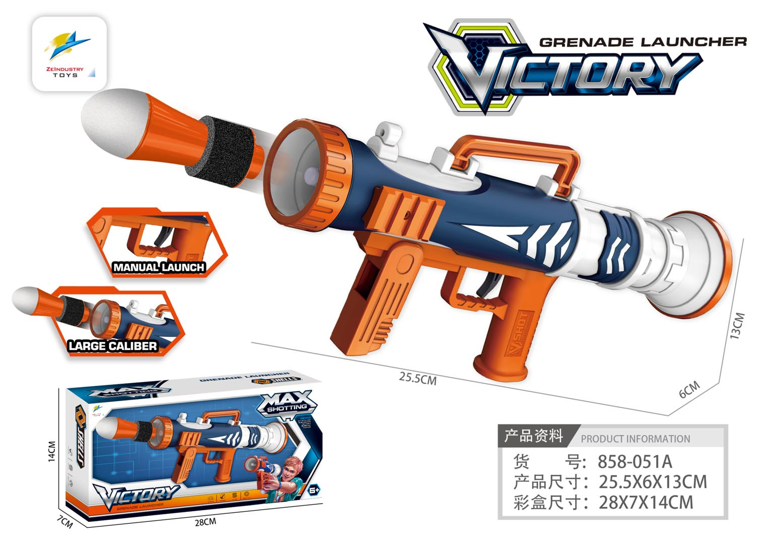 Velká odpalovací zařízení pro měkké pěnové střely pro děti od šesti let. Hračka byla vyrobena z materiálů bezpečných pro děti. Použití odpalovacího zařízení je mimořádně jednoduché. Stačí umístit náboj do hlavně a stisknout spoušť. Hračka poskytne vzrušení malým i velkým, bude ideální pro aktivní trávení času venku. Vystřelovač má pohodlnou rukojeť pro přenášení a k jeho provozu není potřeba baterií.