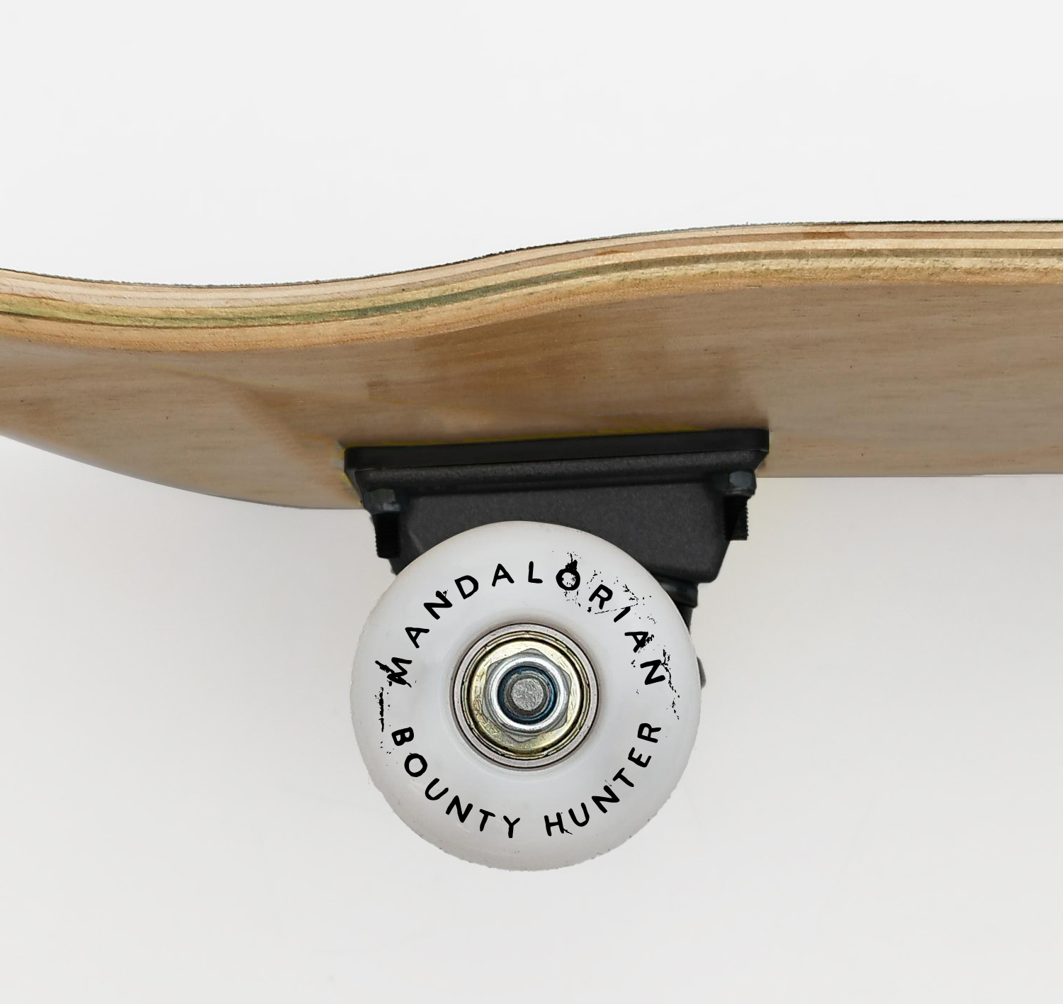 Dřevěný skateboard ozdobený módními vzory Star Wars. Je ideální pro použití na chodnících, náměstích a městských uličkách. Deska je vyrobena z odolného dřeva a má protiskluzový povrch, který zajišťuje trakci a zvyšuje bezpečnost.