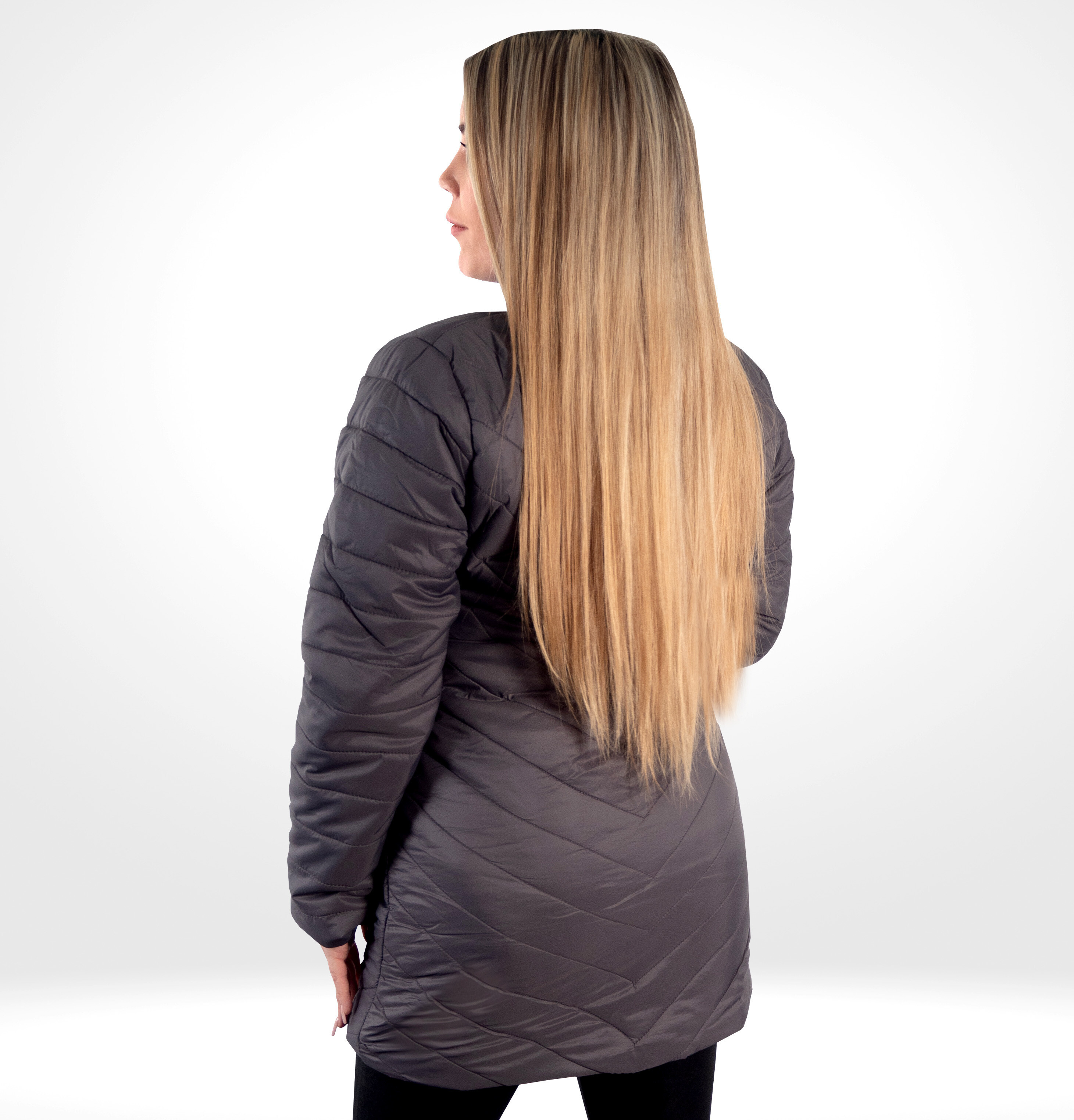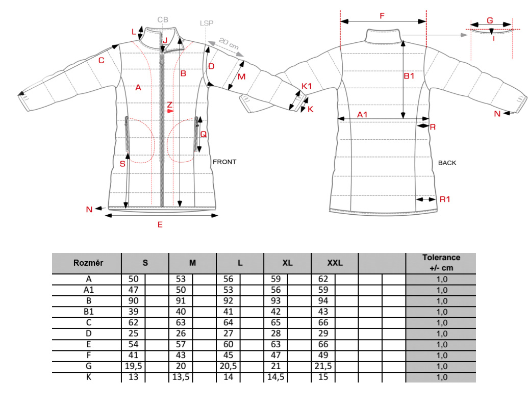 - Střih: Prošívaná, zvýšený límec, celopropínací zip