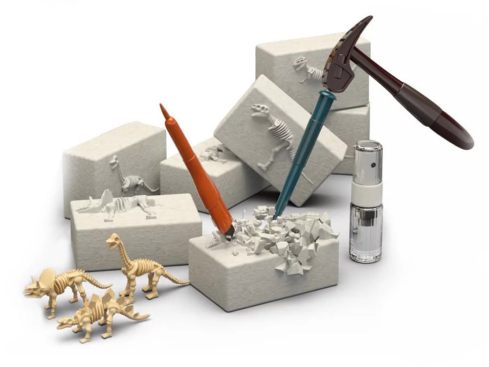 Sada 6 dinosauřích koster k vykopávání. Staňte se paleontologem a vykopejte ze sádry kosti prehistorických dinosaurů, zvířat, která žila na Zemi před tisíci lety. Jedná se o senzační sadu pro malého paleontologa, která pomáhá rozvíjet představivost a znalosti o prehistorických tvorech.