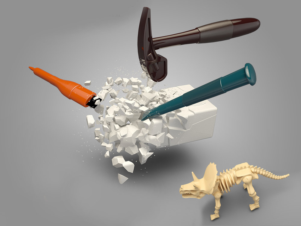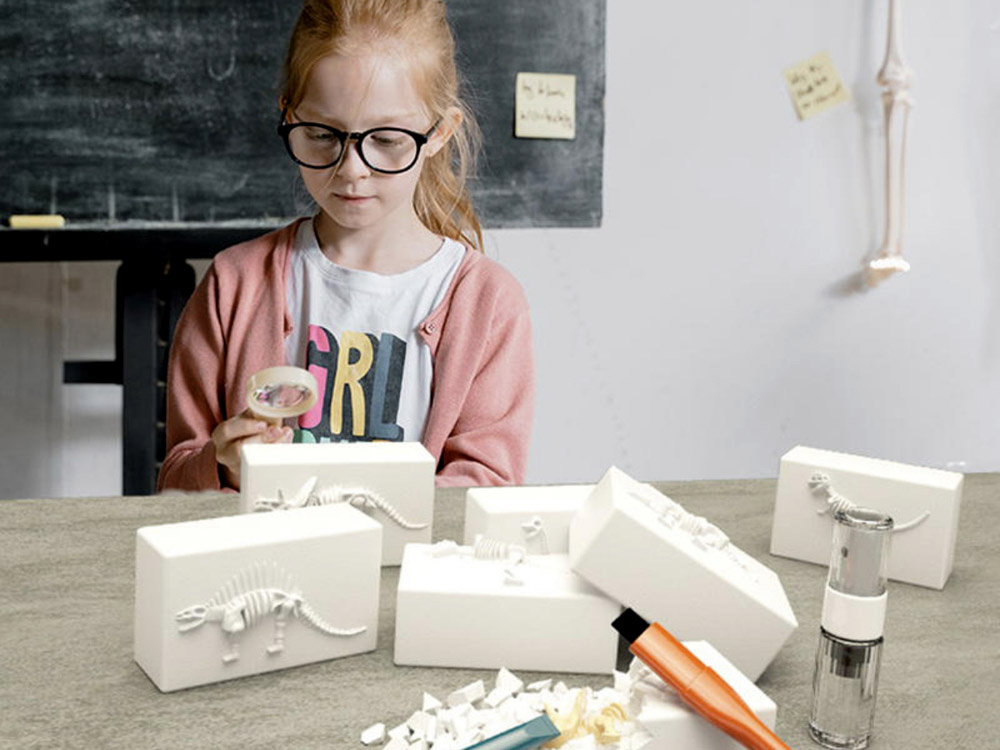 Sada Malý průzkumník je zábava spojená s učením. Při této hře vaše dítě získá znalosti a rozvíjí přesnost při kopání, ale také smysl pro logické myšlení při skládání. K odkrytí kostry použije nástroje, ale je třeba postupovat opatrně, aby nedošlo k jejich poškození. Šest druhů dinosaurů vytvoří malou sbírku v domě malého objevitele.