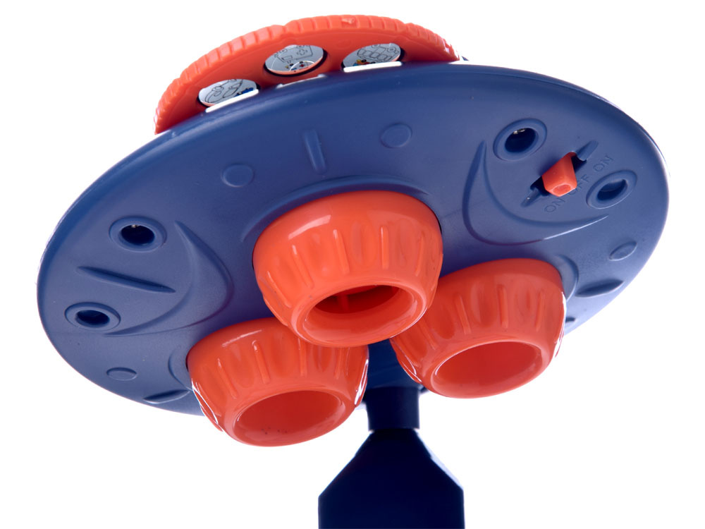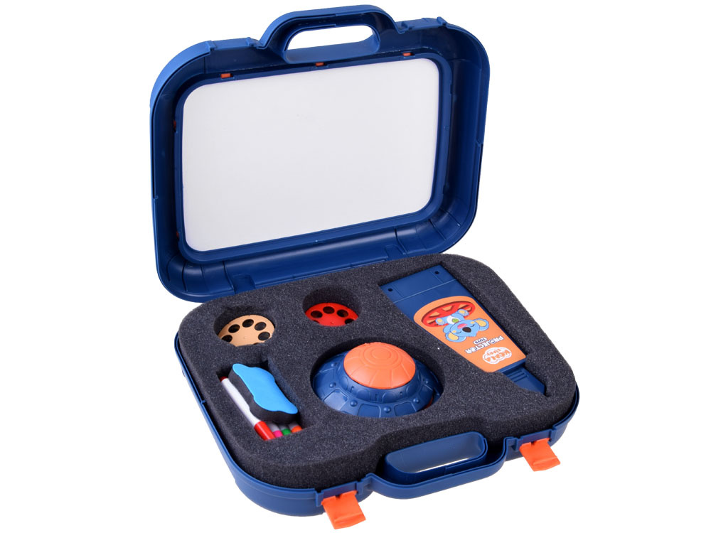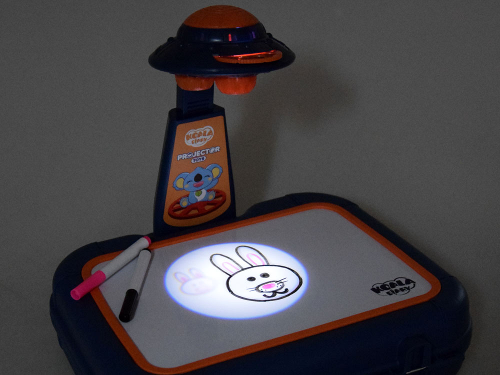 Hračka funguje dvěma způsoby: jako projektor pro zobrazení obrázků (přesuňte tlačítko vedle světel doleva) nebo jako lampa (přesuňte tlačítko doprava). Sada obsahuje až 48 různých obrázků na 6 kruhových šablonách. Obrázky, které je třeba nakreslit, jsou rozděleny do kategorií: vozidla, zelenina, ovoce, zvířata, sport a šatník. Takto velká zásoba vám zajistí zábavu na mnoho hodin. Zobrazené vzory lze kreslit na suchou mazací plochu nebo na obyčejný list papíru. Projektor má nastavitelný sklon vzhledem k základně a výšce ramene. Po skončení hraní lze všechny dílky bezpečně uložit do kufříku. Držák pouzdra je zároveň základnou pro upevnění ramene projektoru.