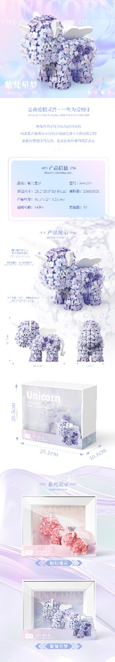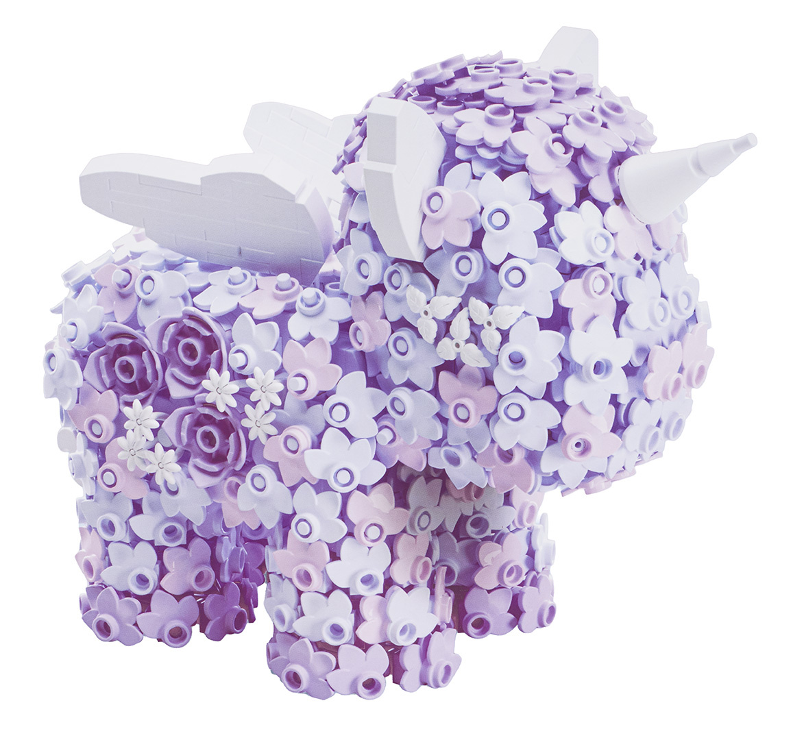 Kreativní sada jednorožec k sestavení z kostek ve tvaru květin pro děti od čtrnácti let. Sada je vyrobena z bezpečného plastu nejvyšší kvality. Sada bude ideální jak pro chlapce, tak pro dívky. Jednotlivé prvky se snadno a trvale spojují. Po složení vznikne figurka jednorožce.