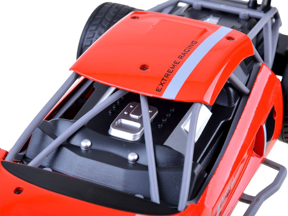 Super výkonné a rychlé auto v intenzivní červené barvě jistě zaujme každého (nejen dítě:), kdo má rád automobilové závody. Vůz se ovládá dálkově. Karoserie vozu je vyrobena z kovu, zatímco ostatní doplňkové prvky jsou z plastu, což přispívá ke skvělému vzhledu tohoto sportovního vozu. Vše bylo vyrobeno s velkou přesností a důrazem na nejmenší detaily, takže auto vypadá velmi realisticky. Jeho promyšlená konstrukce a hmotnost se 4 gumovými koly přispívají k jeho přilnavosti k zemi a umožňují mu jezdit na dráze rychlostí až 15 km/h! Jeho konstrukce není tuhá, a proto je mimořádně odolný vůči nečekaným nehodám, ke kterým dojde během jízdy.