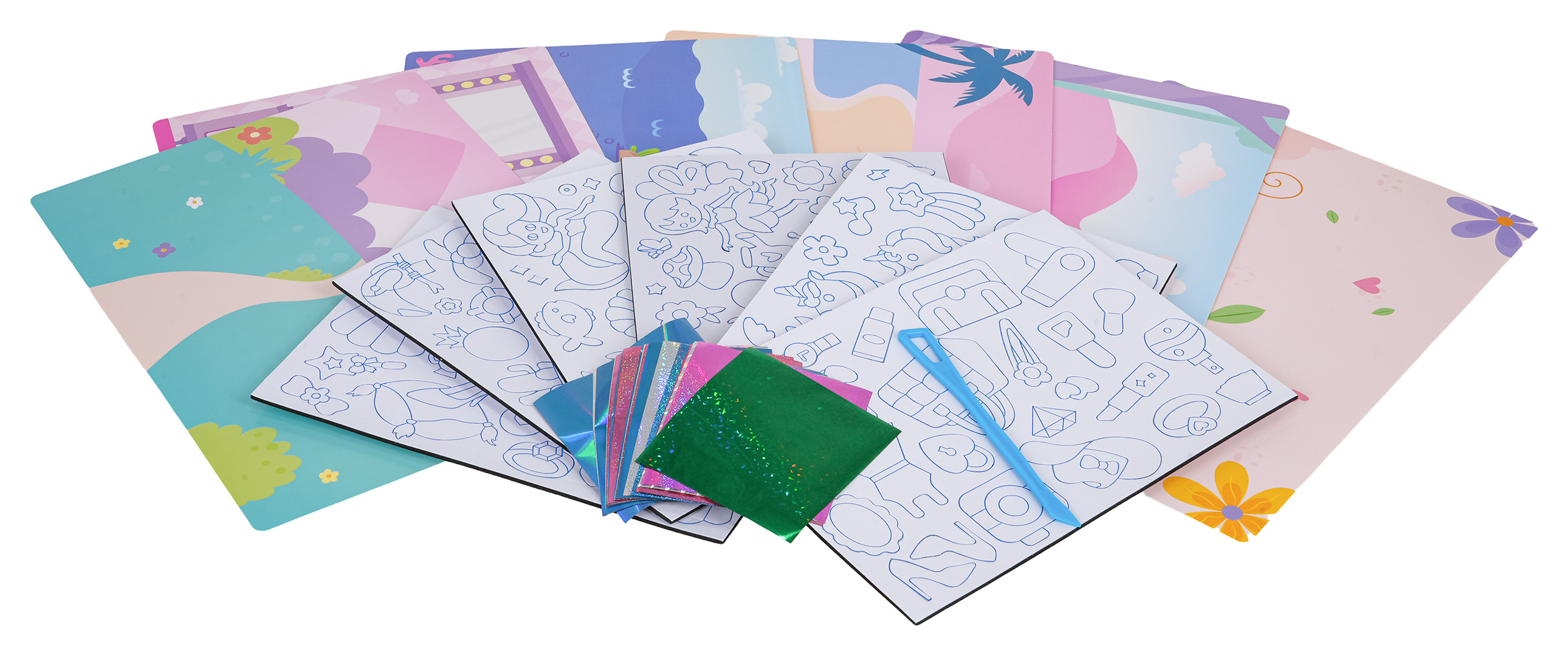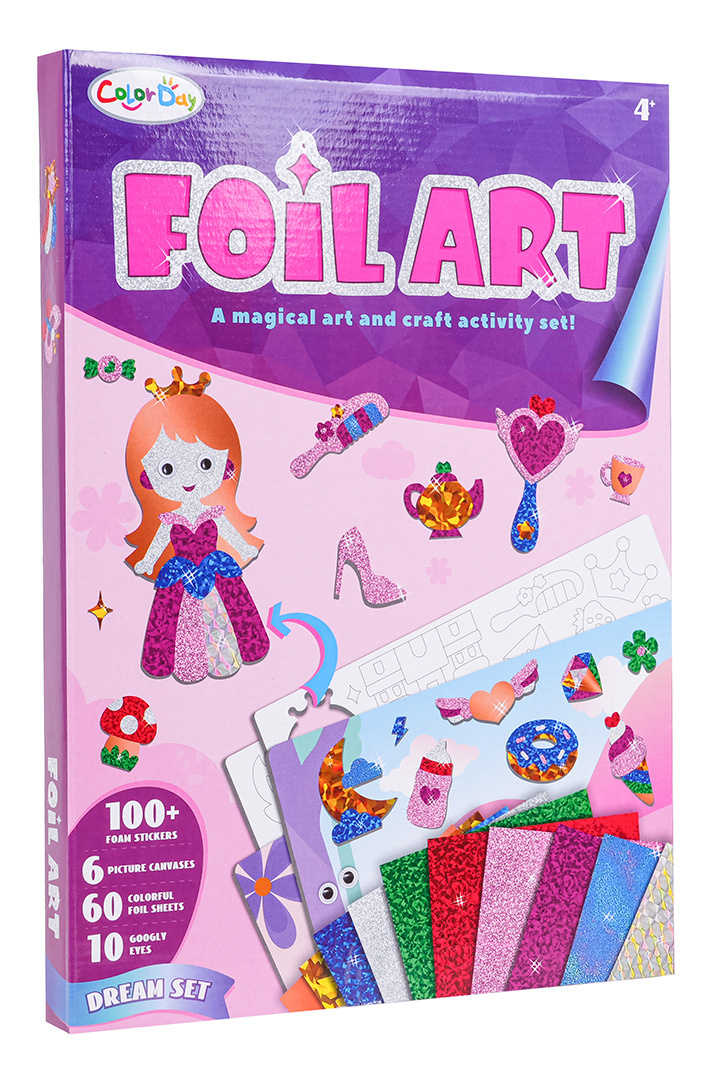 Bohatě vybavená sada pro vytváření barevných obrázků pro děti od čtyř let. Sada se skládá z pěnových nálepek, šablon s pozadím, třpytivého papíru a špachtle pro snadnější odstranění papíru z pěnových nálepek. Úkolem dítěte je vytvořit kreativní obrázek na různá témata.