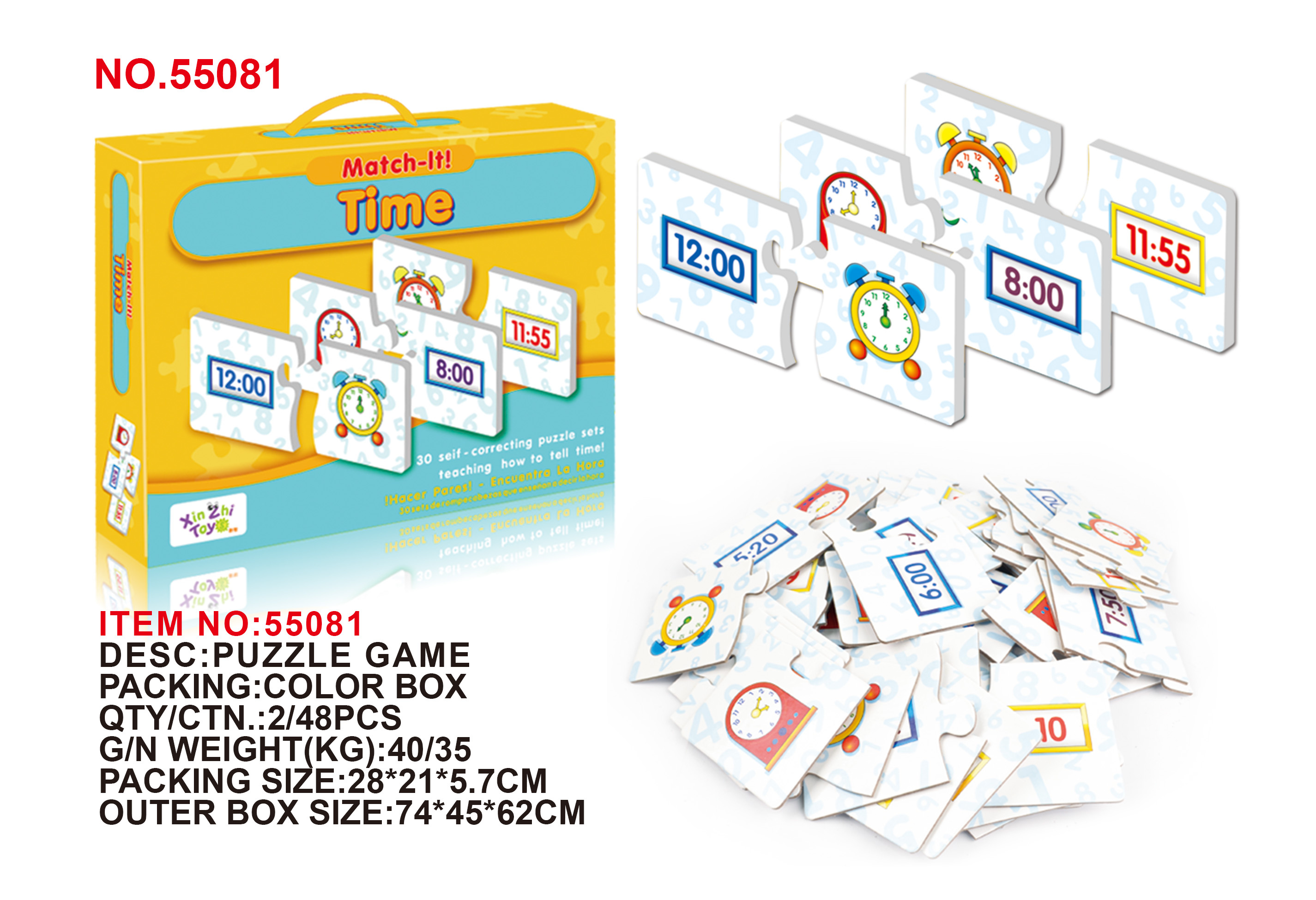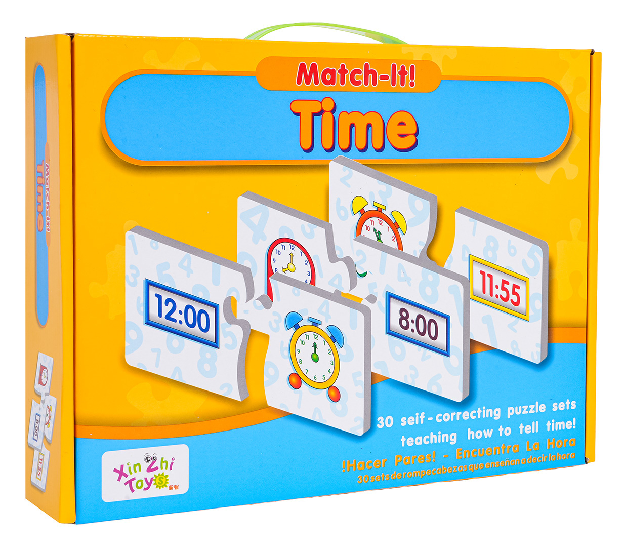 Vzdělávací hra s učením hodin pro děti od tří let. Hra se skládá z 60 puzzlí, díky kterým se dítě učí poznávat čas a přizpůsobovat tvary. Hra také trénuje koordinaci ruka-oko, rozvíjí postřeh a koncentraci. Z jedné strany máme obrázek hodin a z druhé čas zapsaný v digitální formě. Dítě musí přizpůsobit jeden prvek k druhému. Hra ideálně spojuje učení a zábavu.